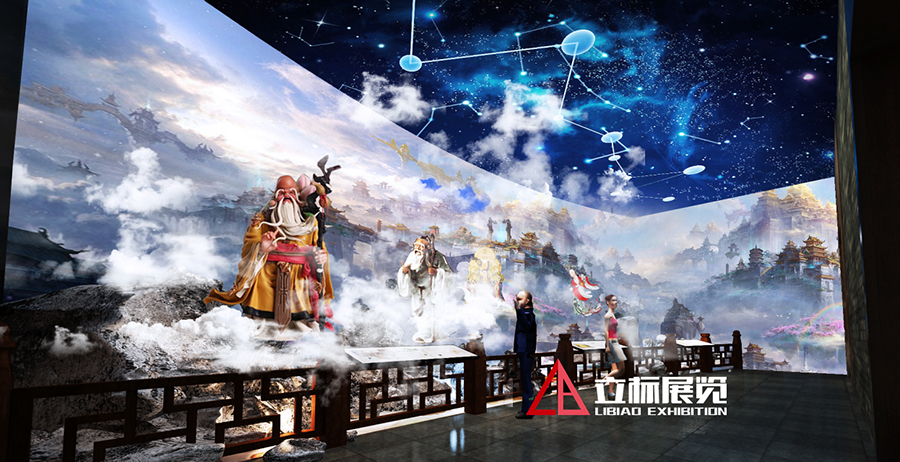 在展馆设计中,我们以多方的广阔视角,以“高山仰止 寿岳衡山”为设计概念主题,以奥运会、世博会为标志的现代展览语法为设计蓝本,原创出从空间语汇的独特到装饰材料的精致展陈形式来,打造出“典雅、厚重、前沿、科技”的展示空间氛围,构建出寿文化取得的成果以及对南岳寿文化传播的决心。